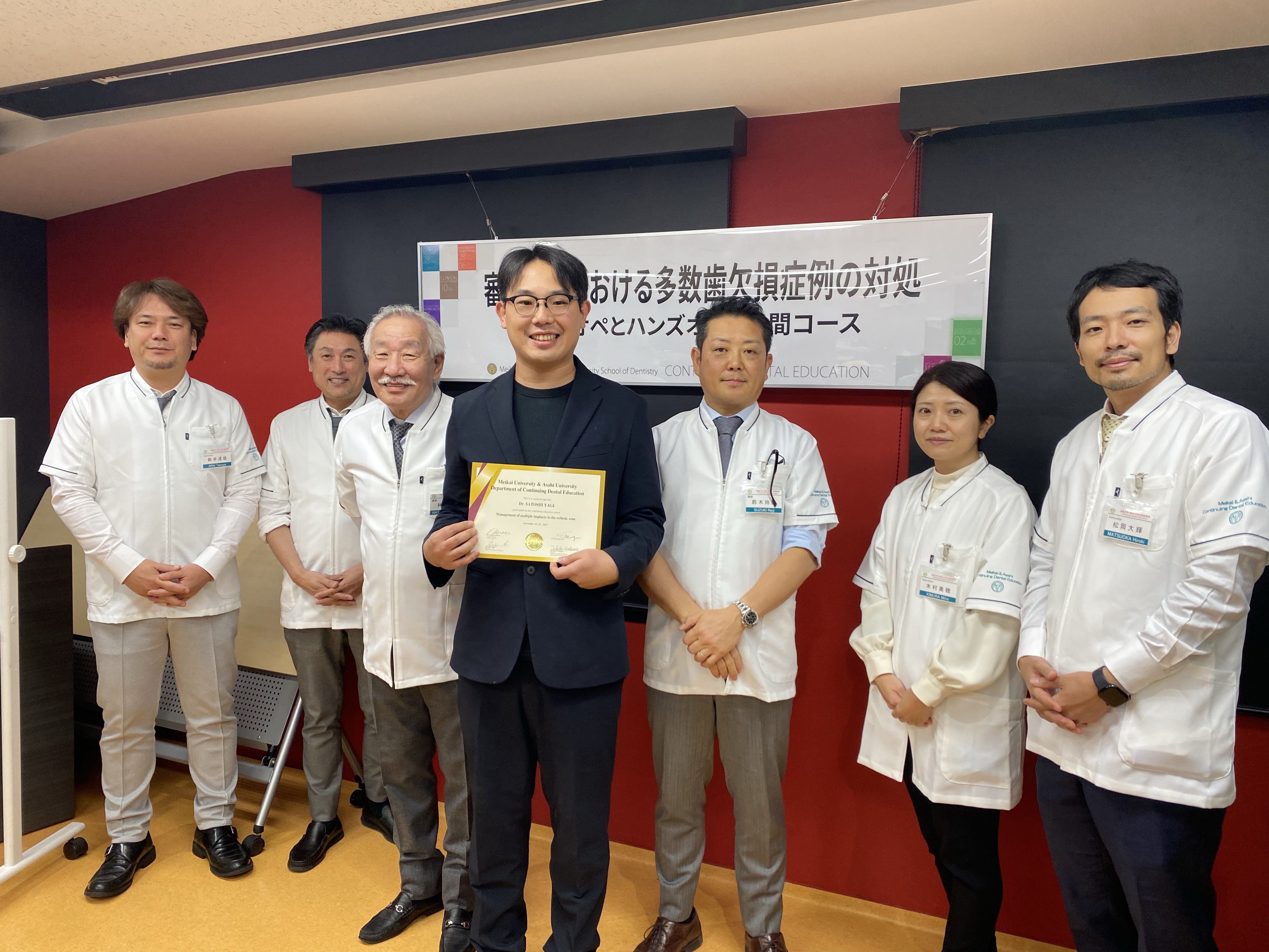 審美領域における多数歯欠損症例の対処 明海大学で講習 11月22.23日と二日間明海大学にて勉強させていただきました。 明海大学って埼玉にあると思っていたのですが代々木にもクリニックがあり、そこで ライブオペの見学をさせていただきました。 朝から晩まで実習講義オペと充実した二日間でした。 公開日:2025.11.30 インプラント 投稿ナビゲーション 前 : 11月22日は休診となります。
